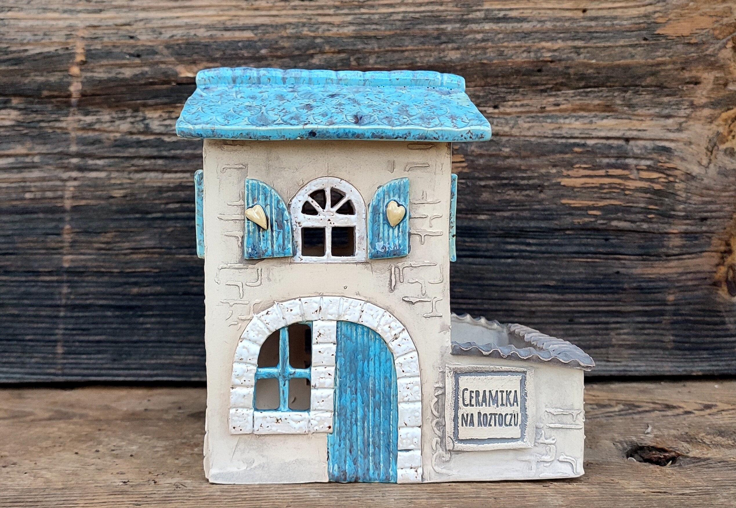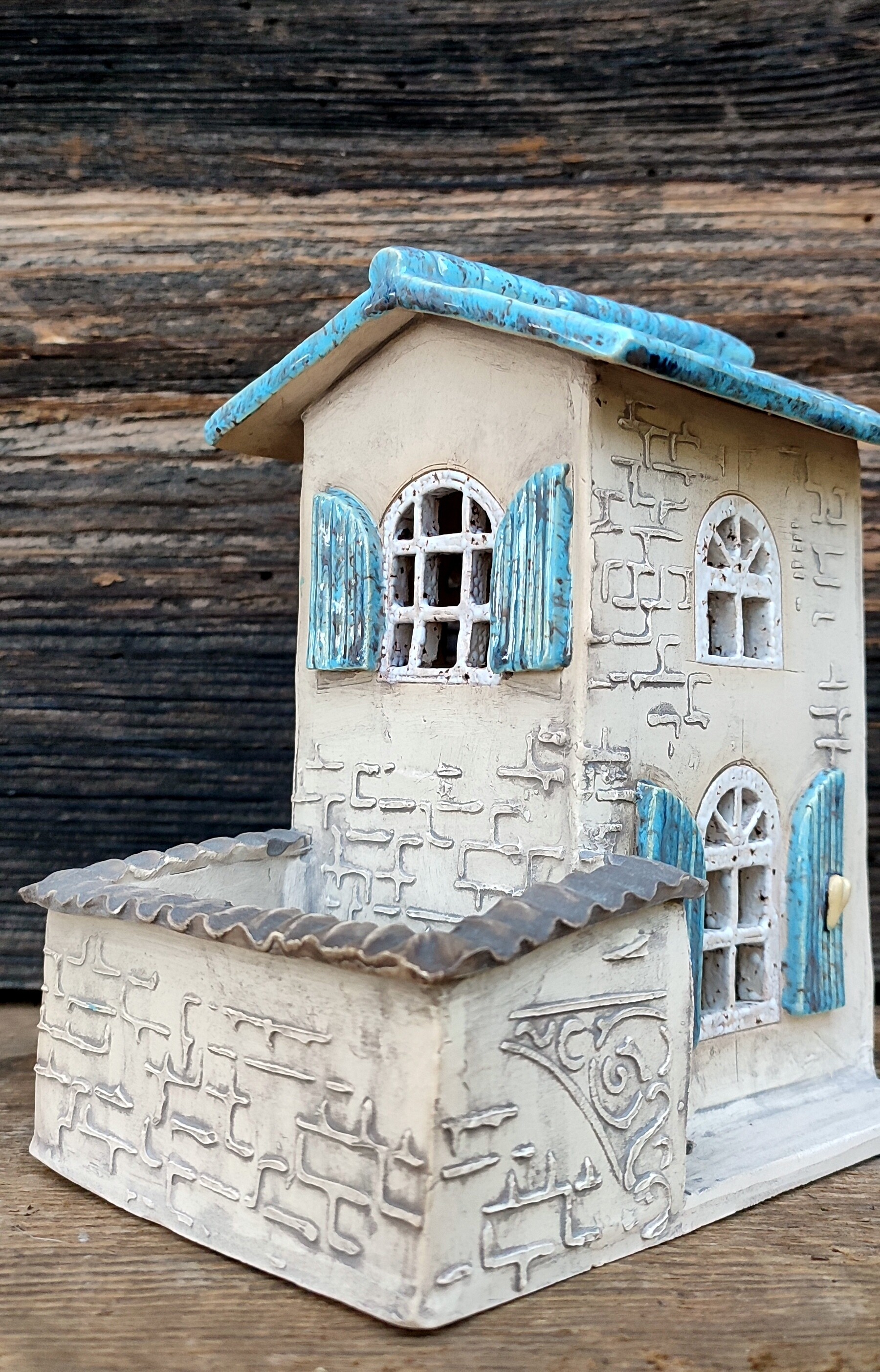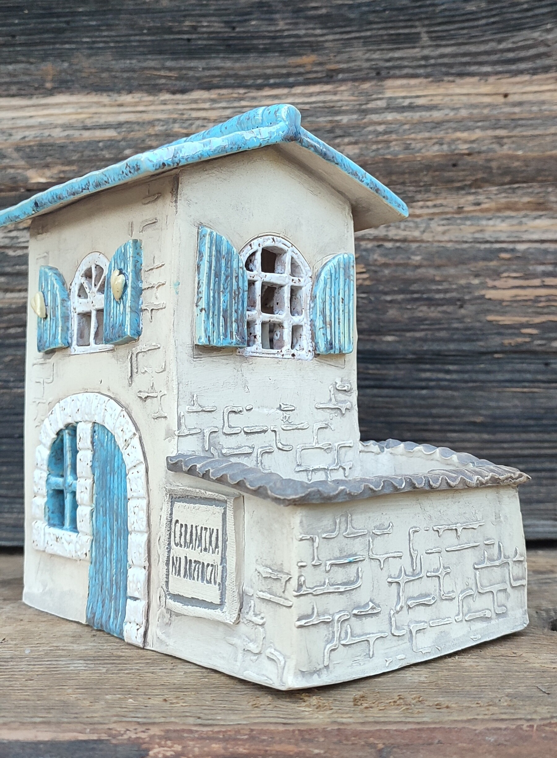 „Błękitne Patio” to ceramiczny domek, który powstał całkowicie ręcznie, od pierwszego dotknięcia gliny po ostatnie muśnięcie szkliwa.