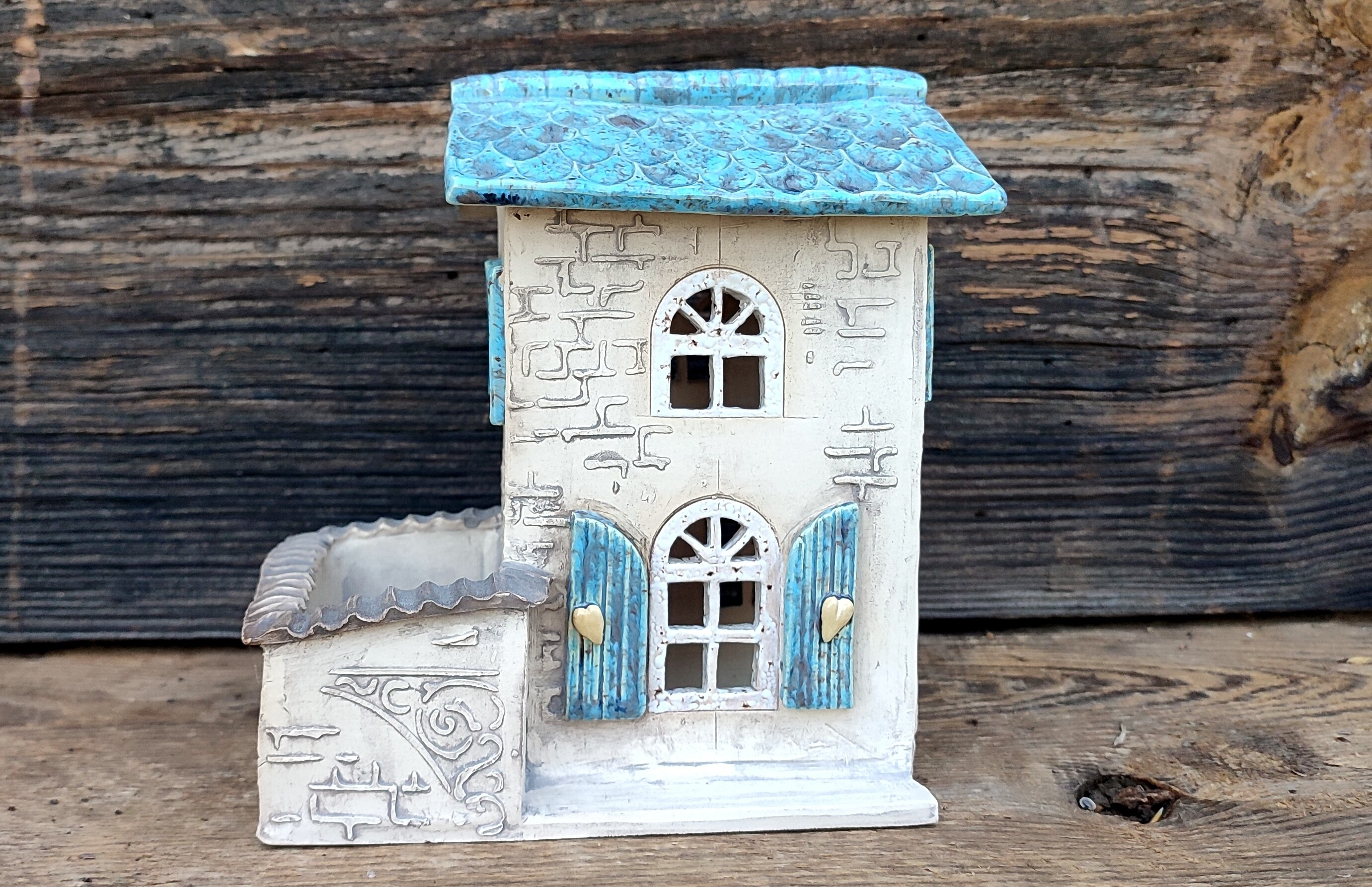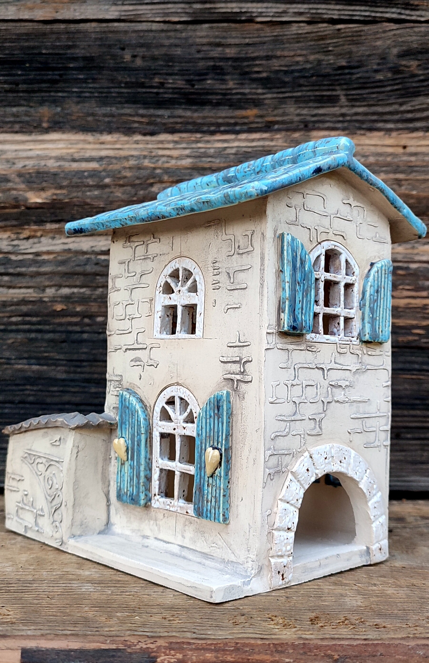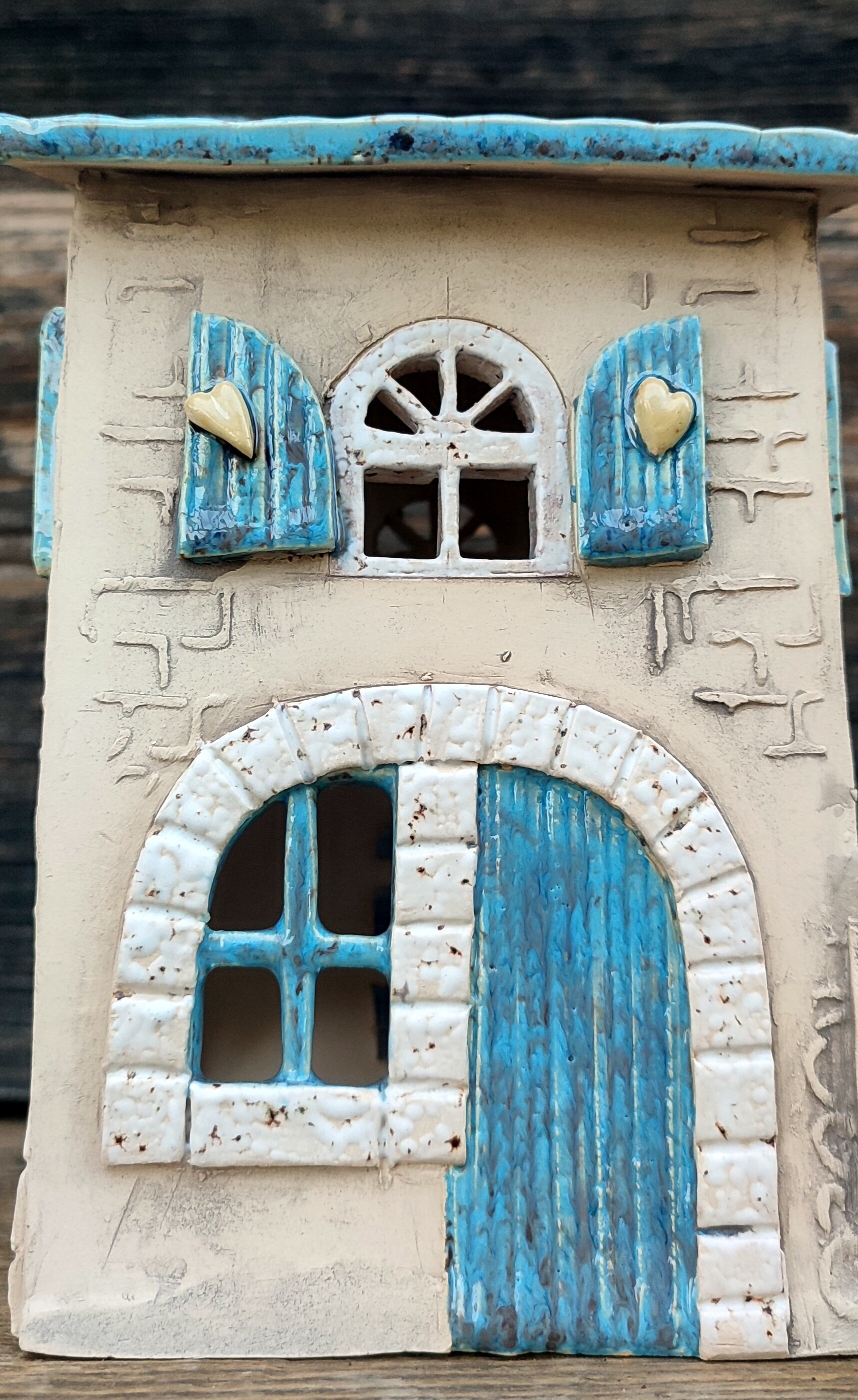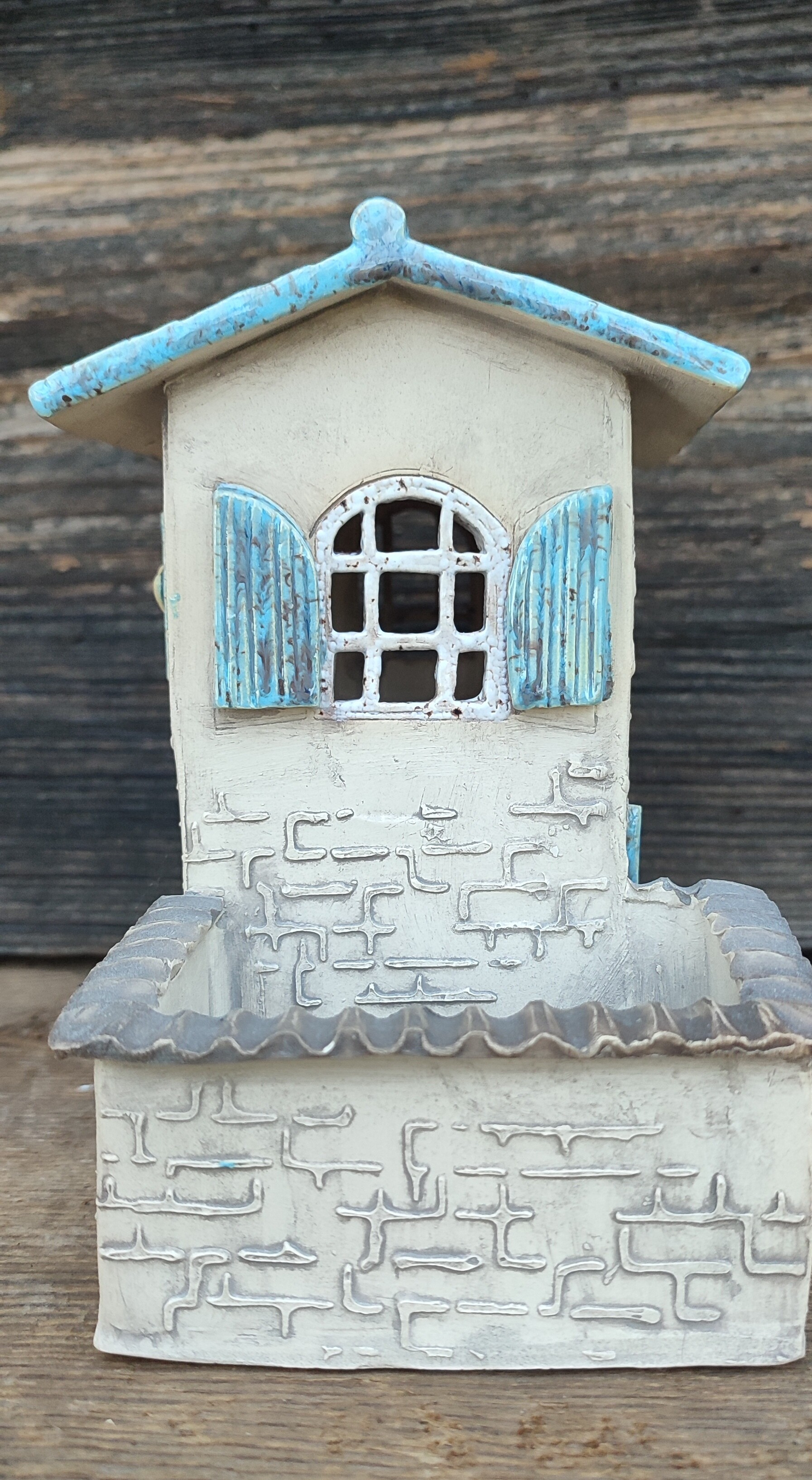 „Błękitne Patio” to ceramiczny domek, który powstał całkowicie ręcznie, od pierwszego dotknięcia gliny po ostatnie muśnięcie szkliwa.