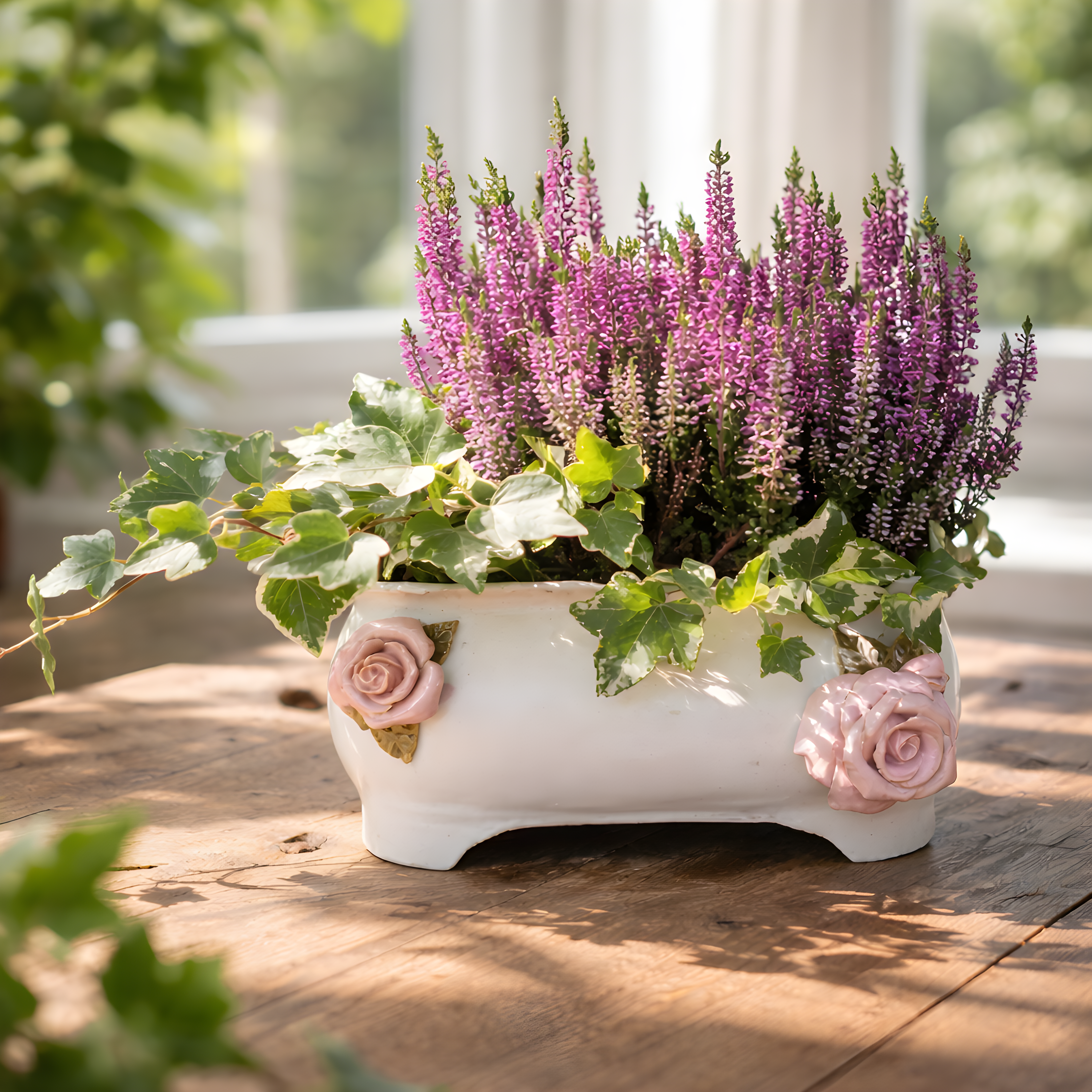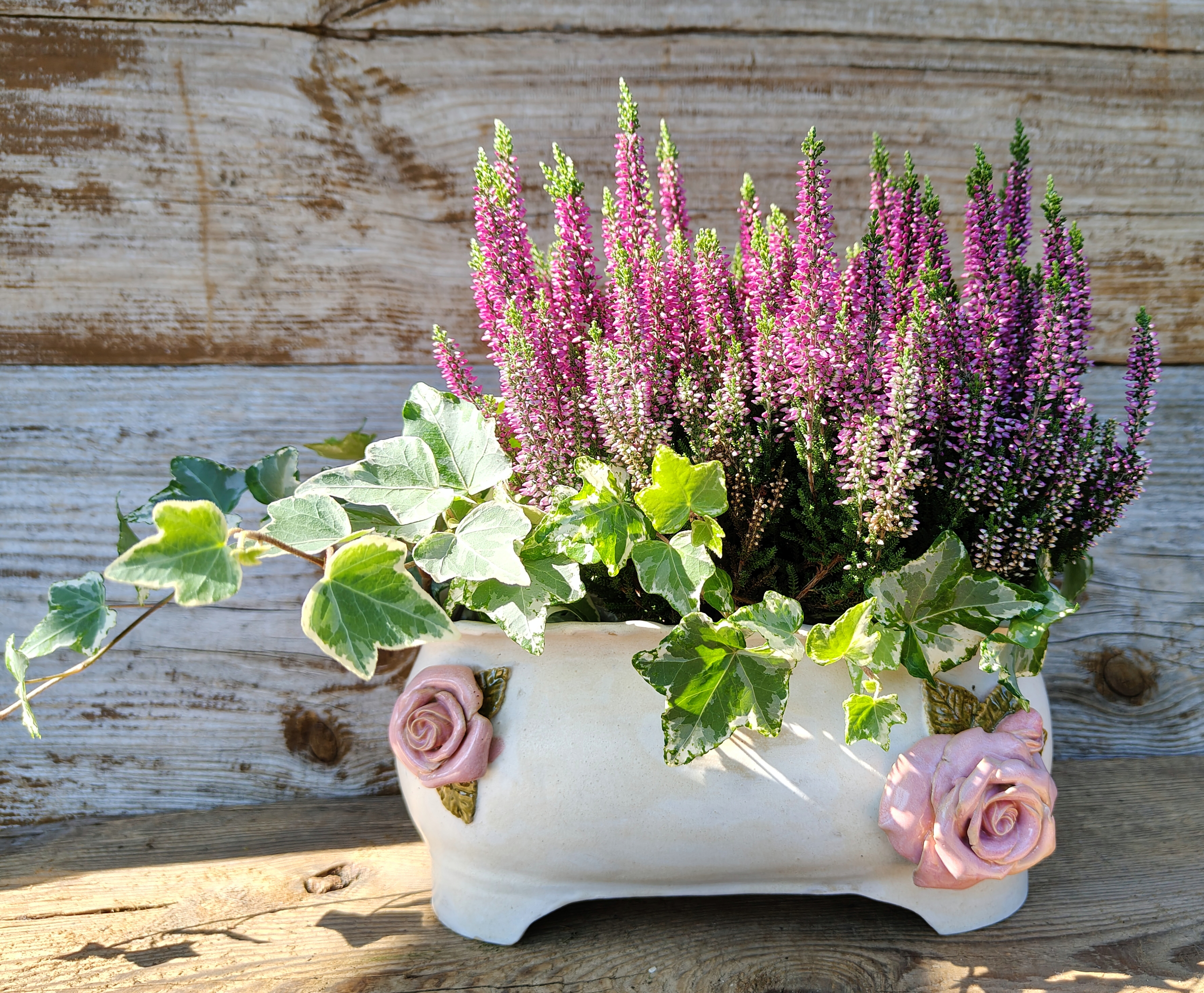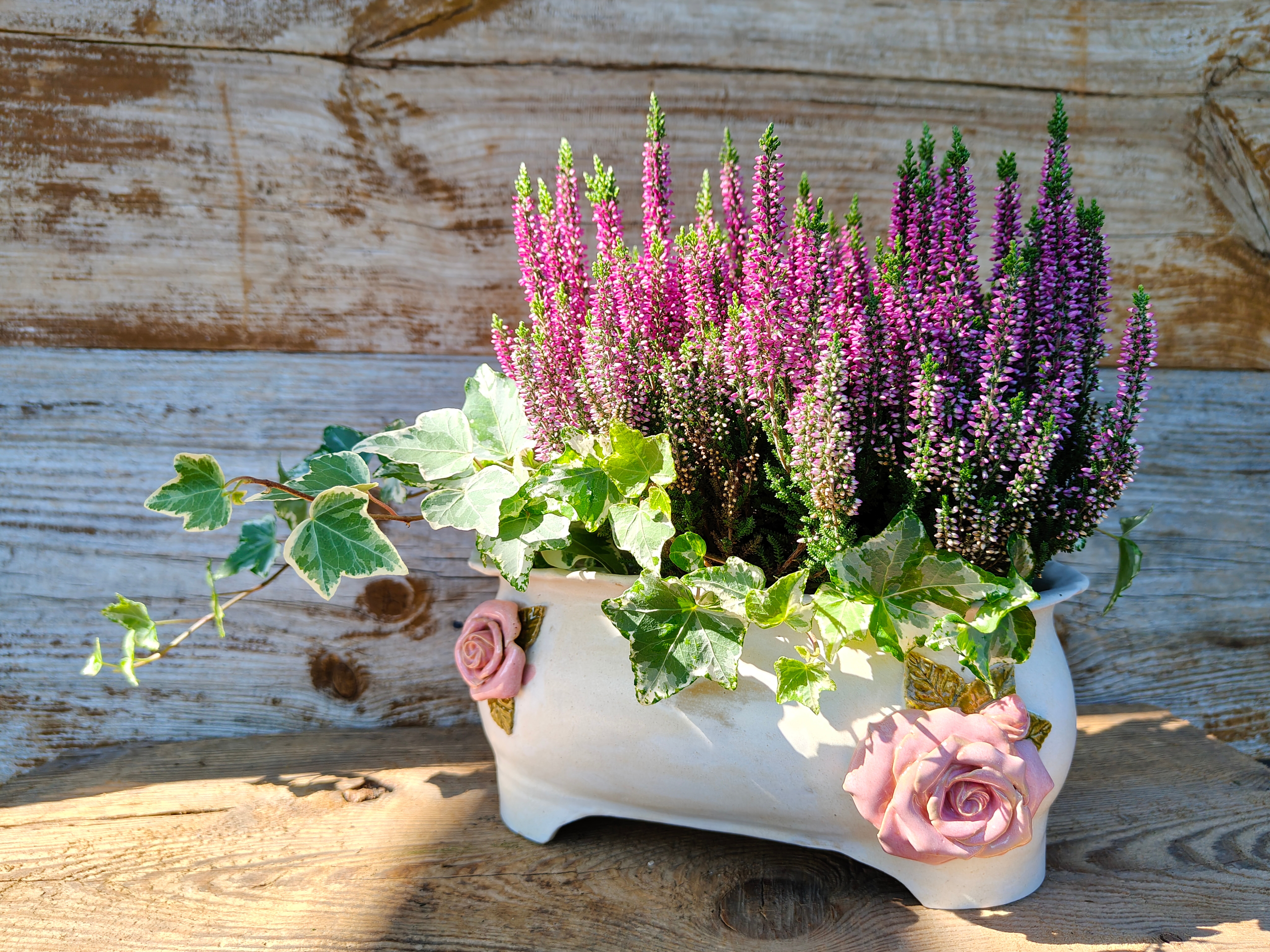 Wypełnij ją wrzosami, bluszczem lub ziołami — a stanie się ozdobą, która tchnie życie w każde wnętrze, balkon lub taras.