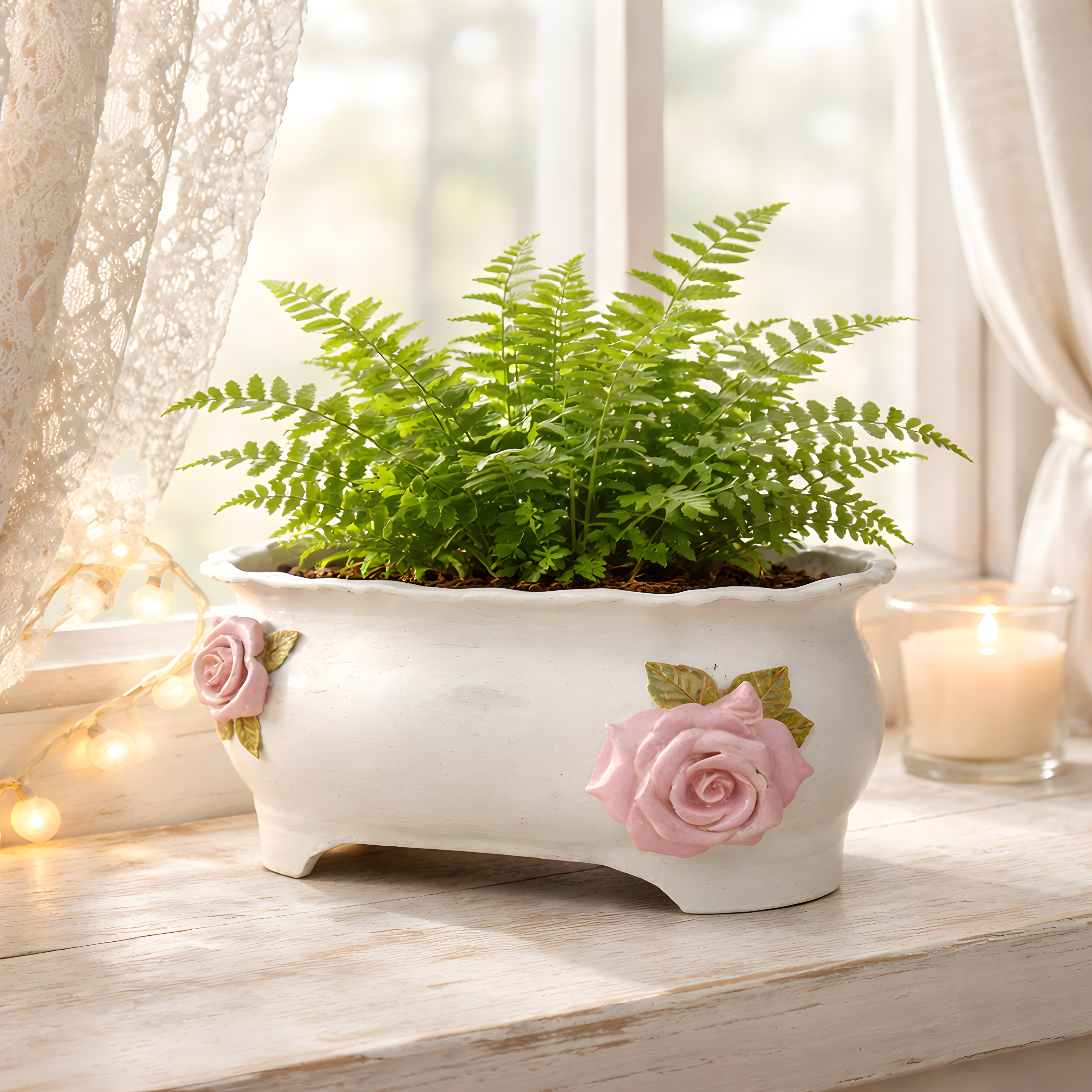 „Florentyna” to doniczka, która przenosi myślami do sielskiego ogrodu, gdzie w powietrzu unosi się zapach róż i ciepło popołudniowego słońca.