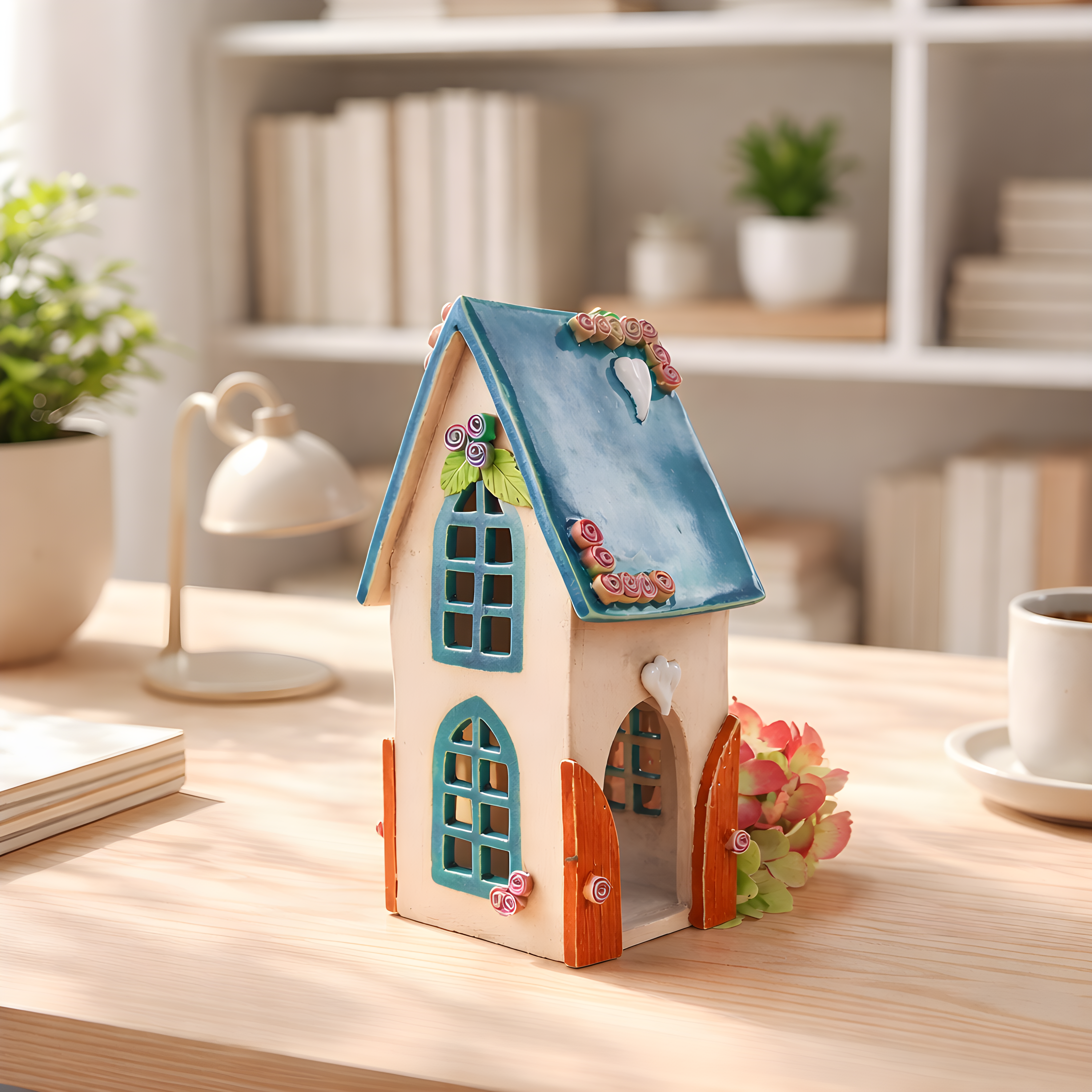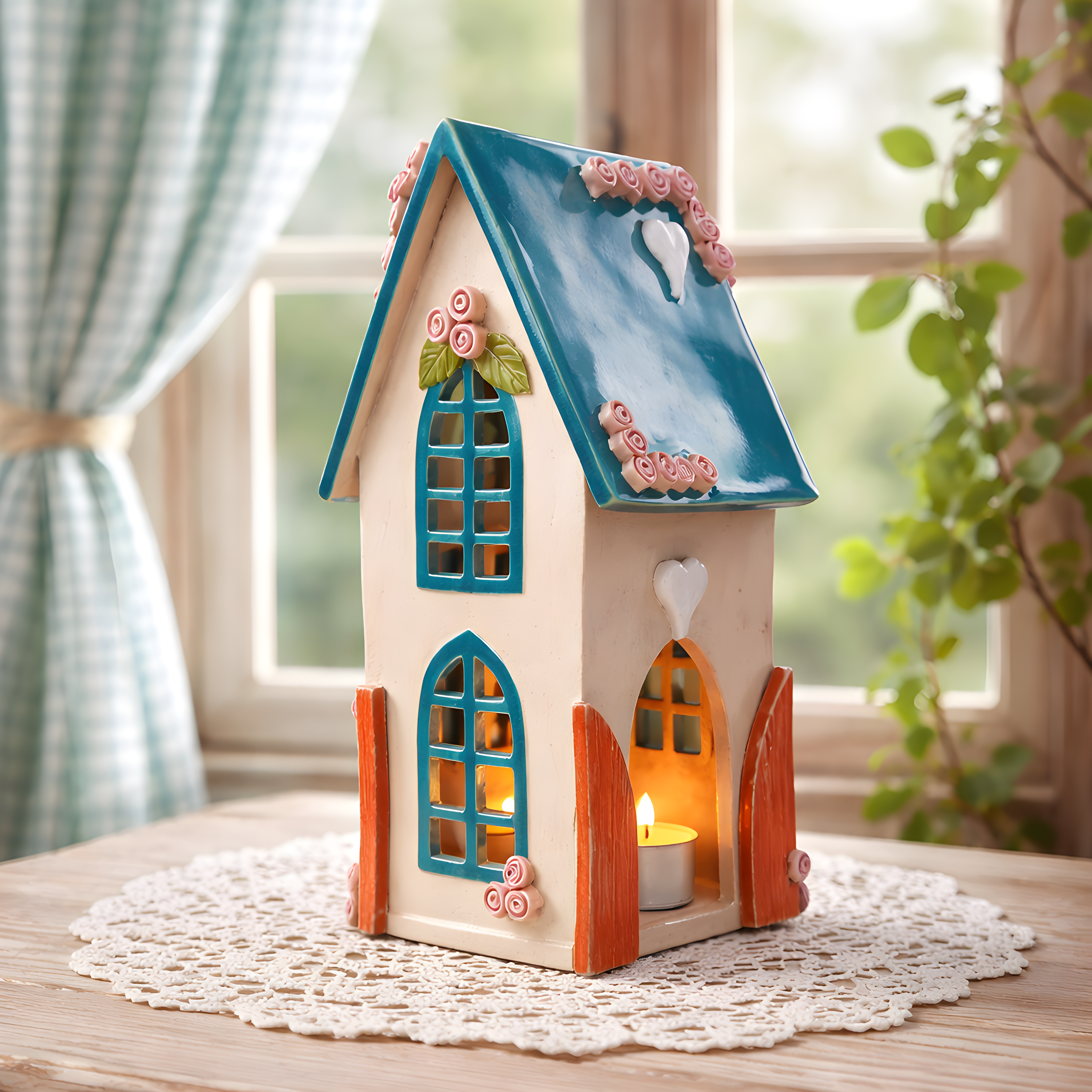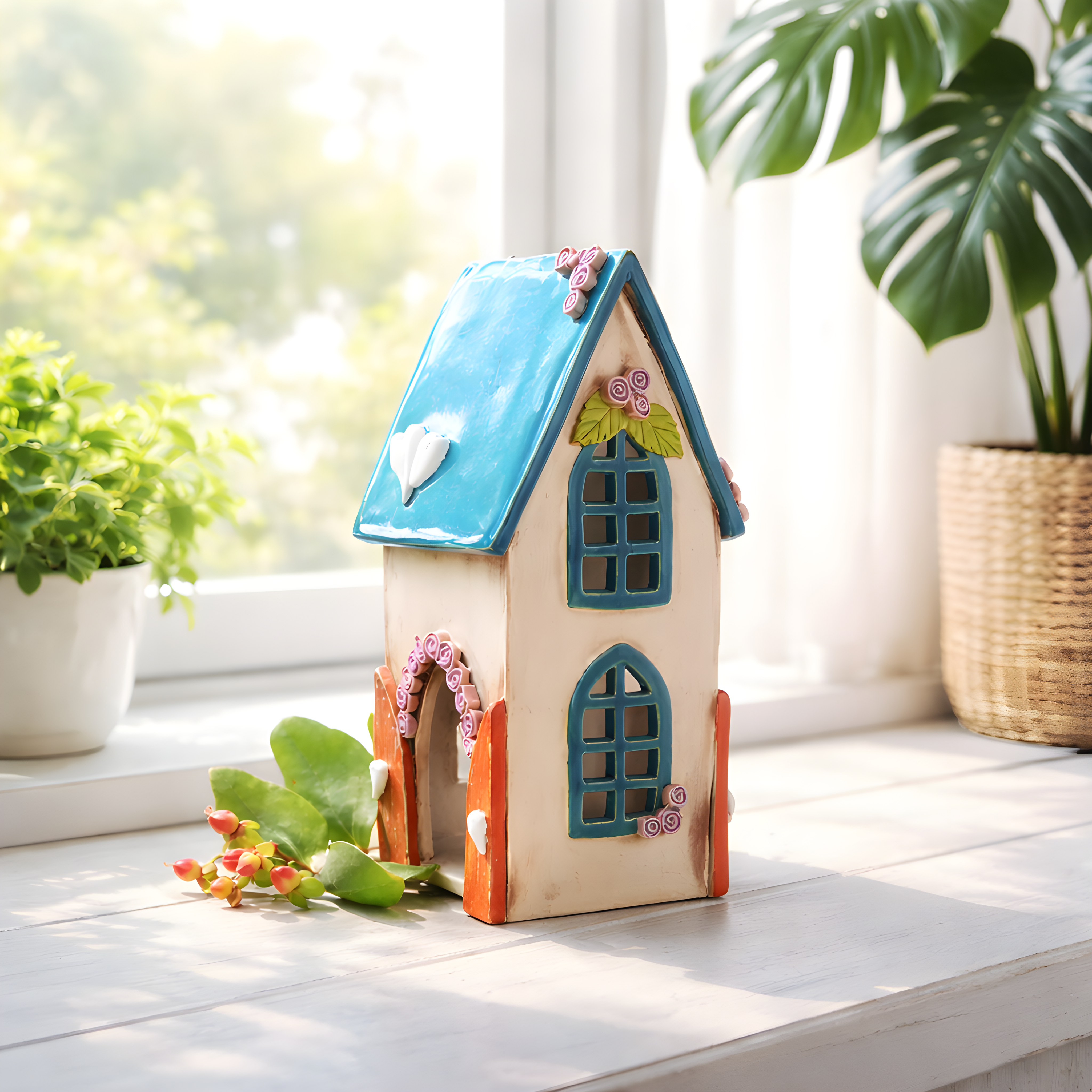 Ten uroczy ceramiczny domek to małe turkusowe marzenie – pełne światła, ciepła i delikatności.