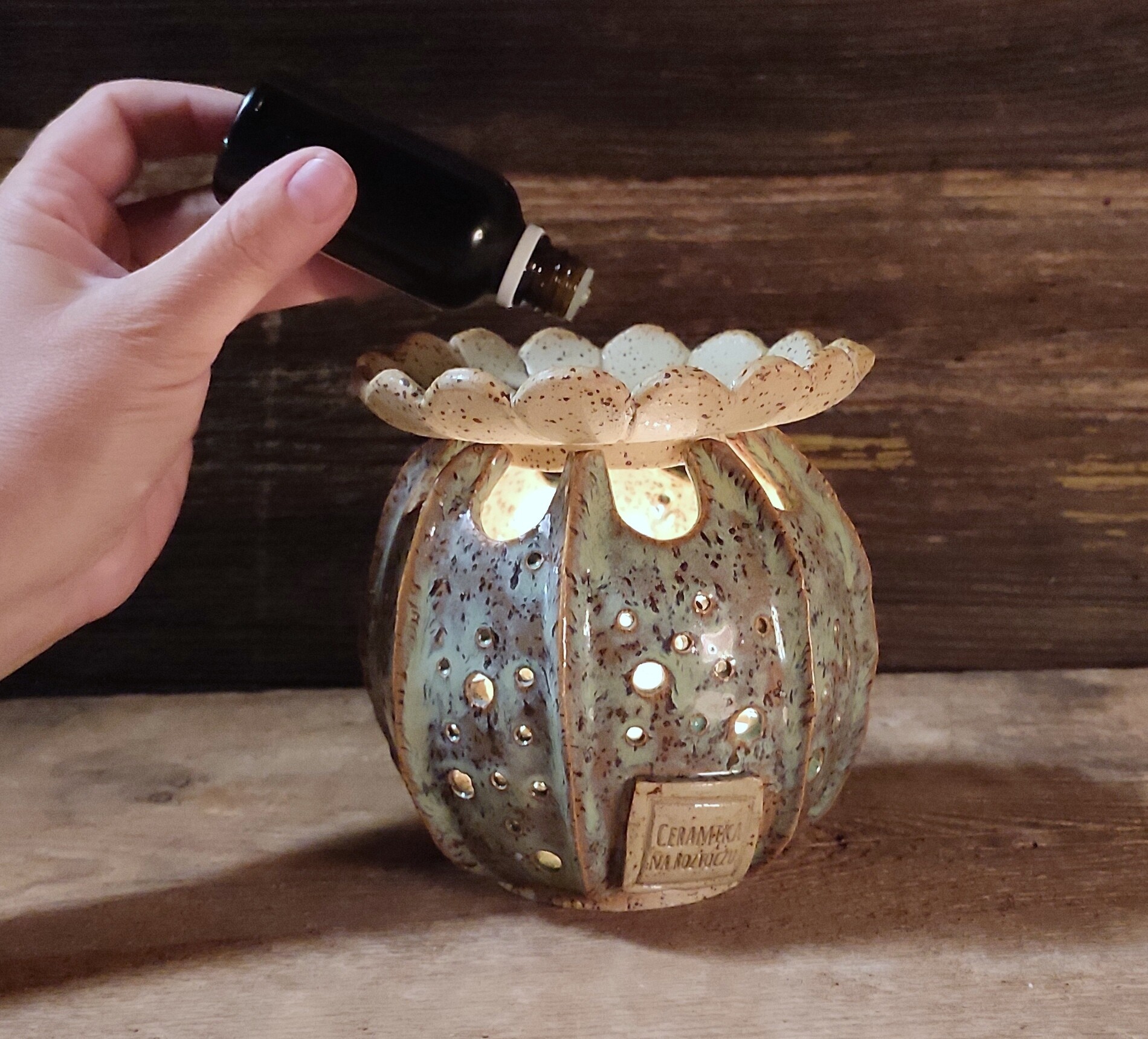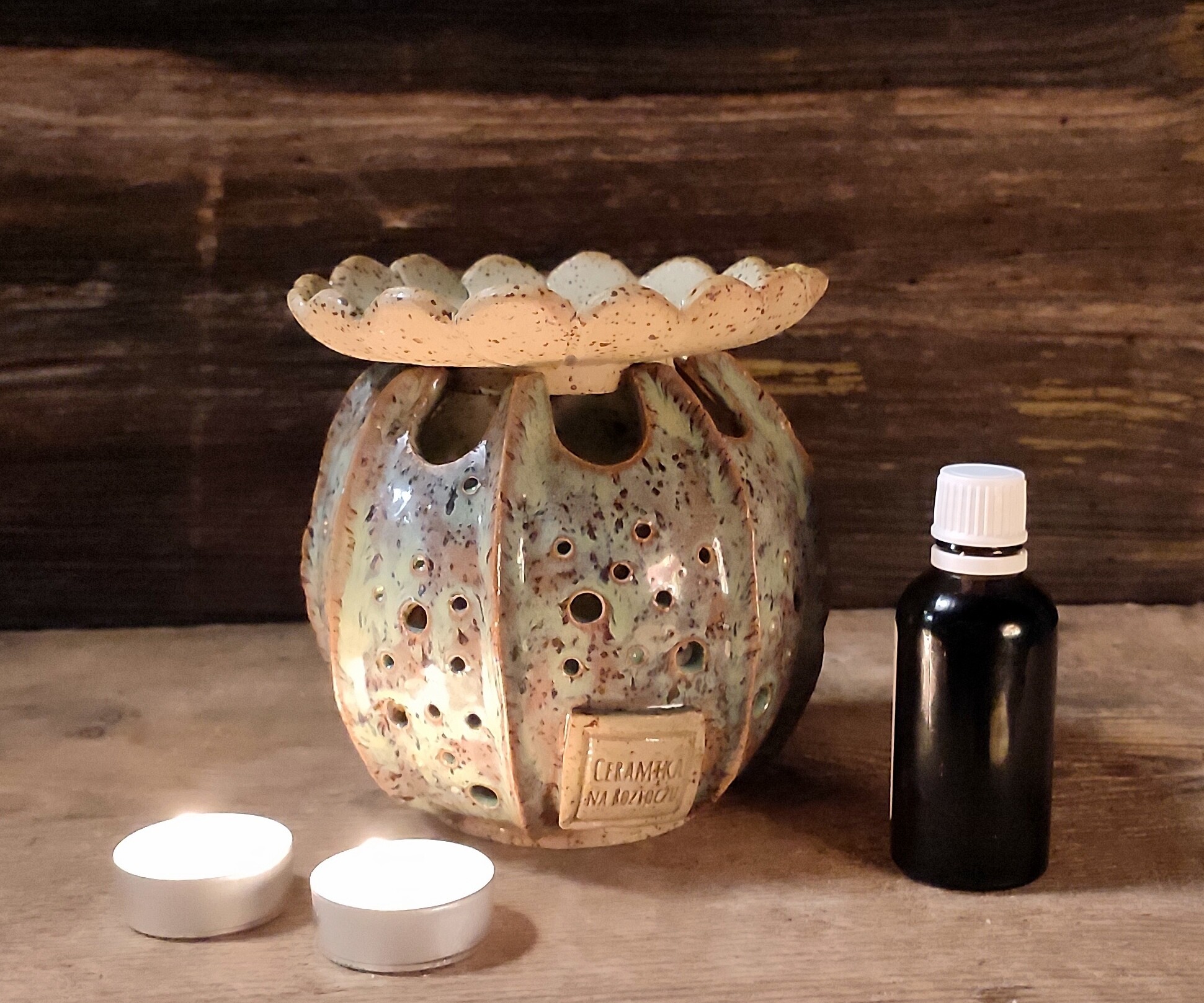 🌸 sprawdzi się jako aromalampa – na talerzyku-pokrywce można umieścić kilka kropel olejku eterycznego, a pod spodem zapalić świecę, by wypełnić przestrzeń ulubionym zapachem;