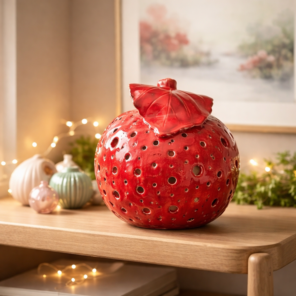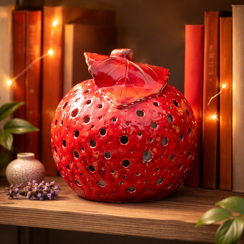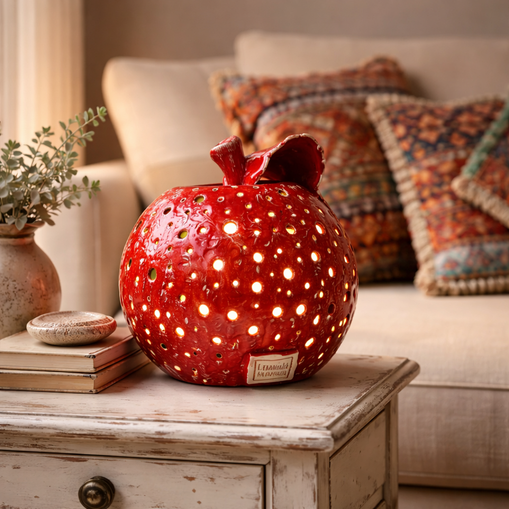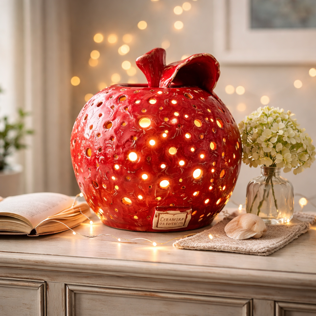 „Magiczny Owoc” to ceramiczny lampion w kształcie jabłka – pełen życia, światła i odrobiny bajki.