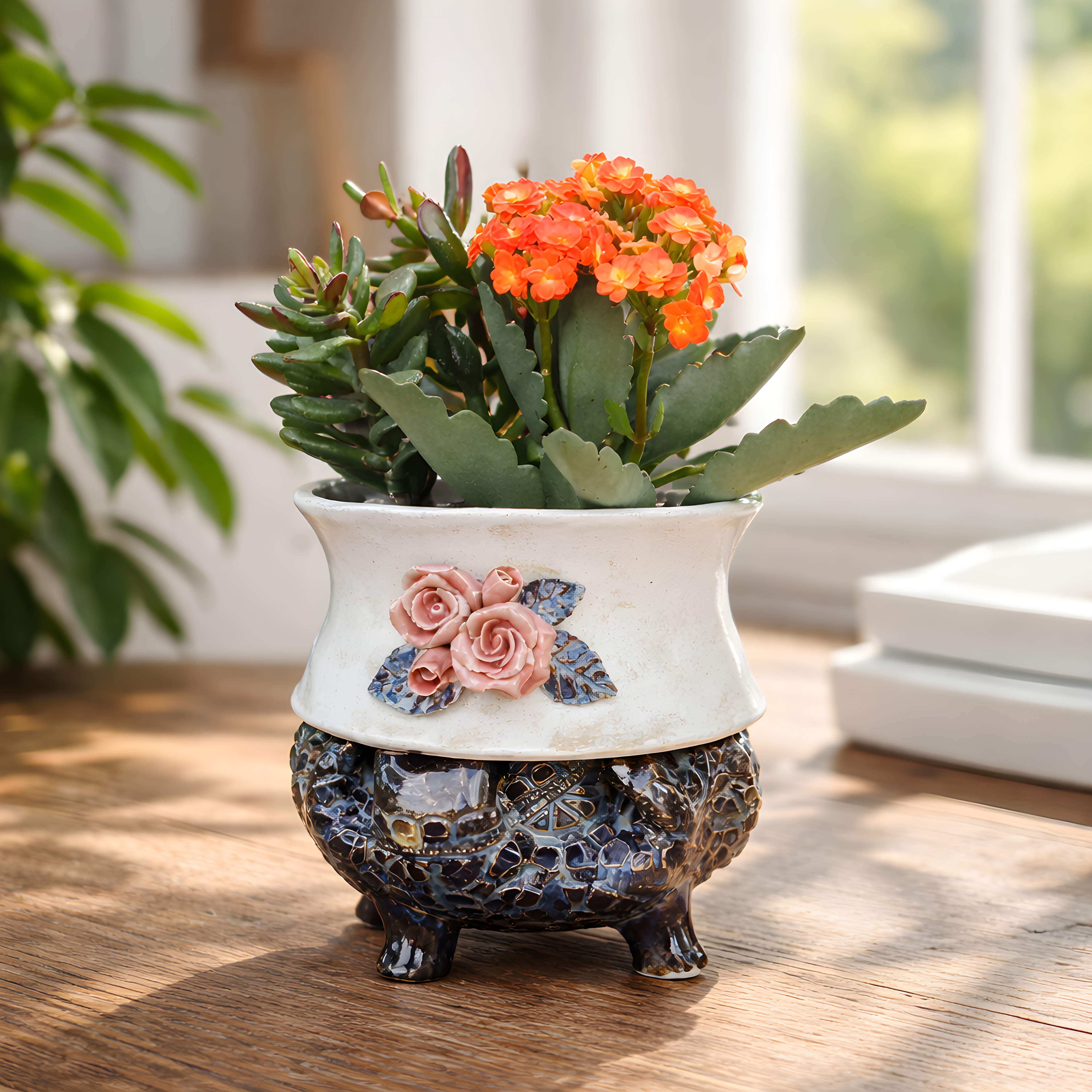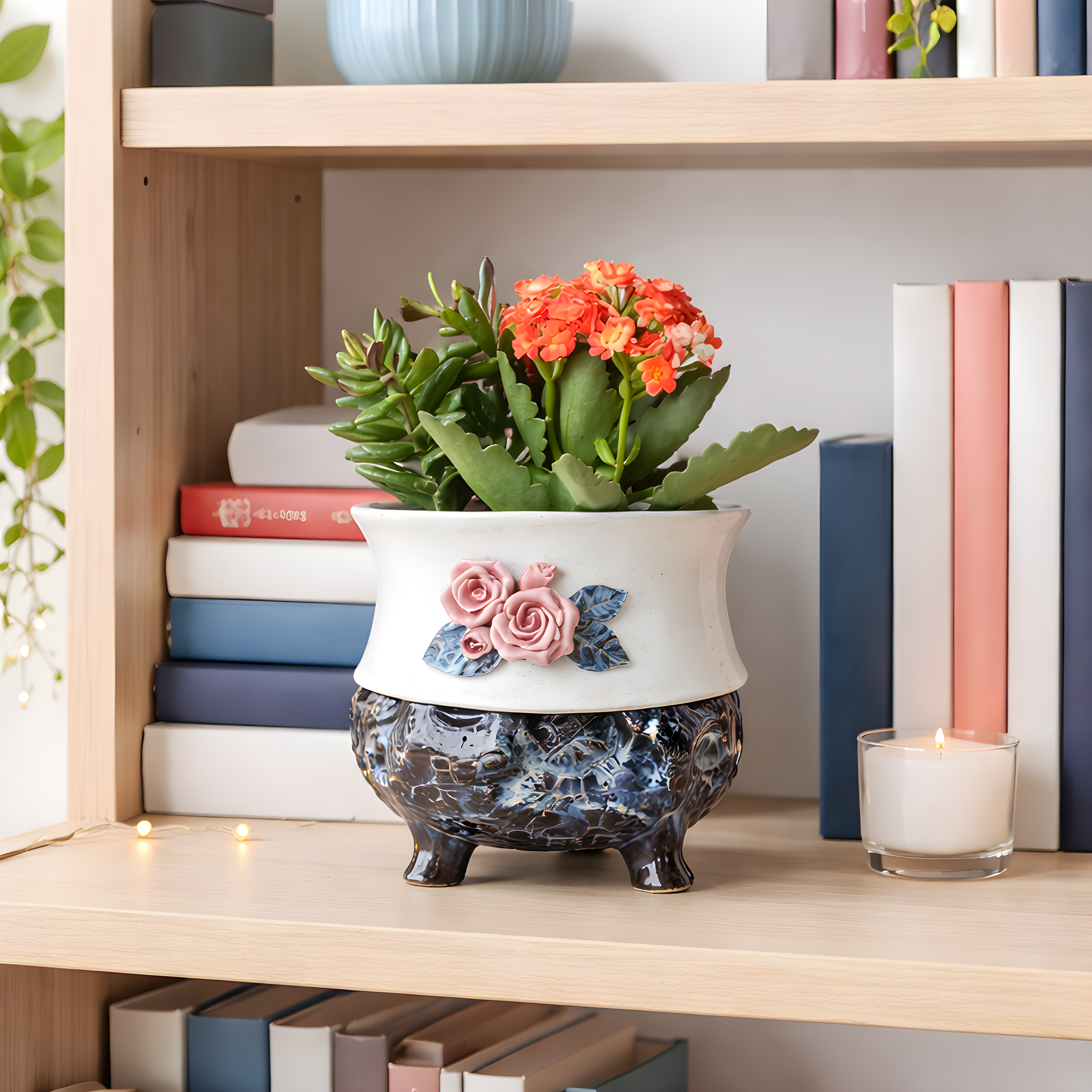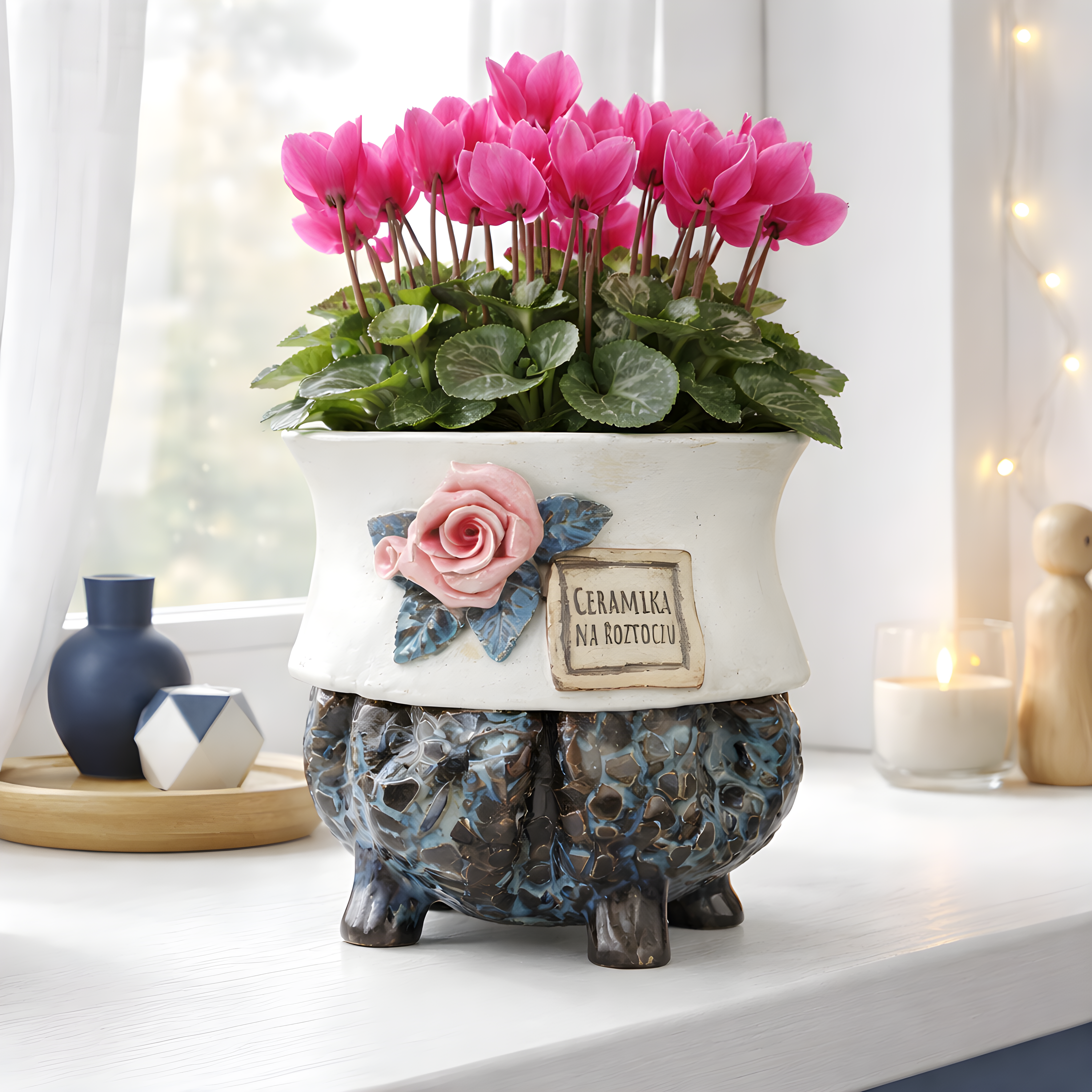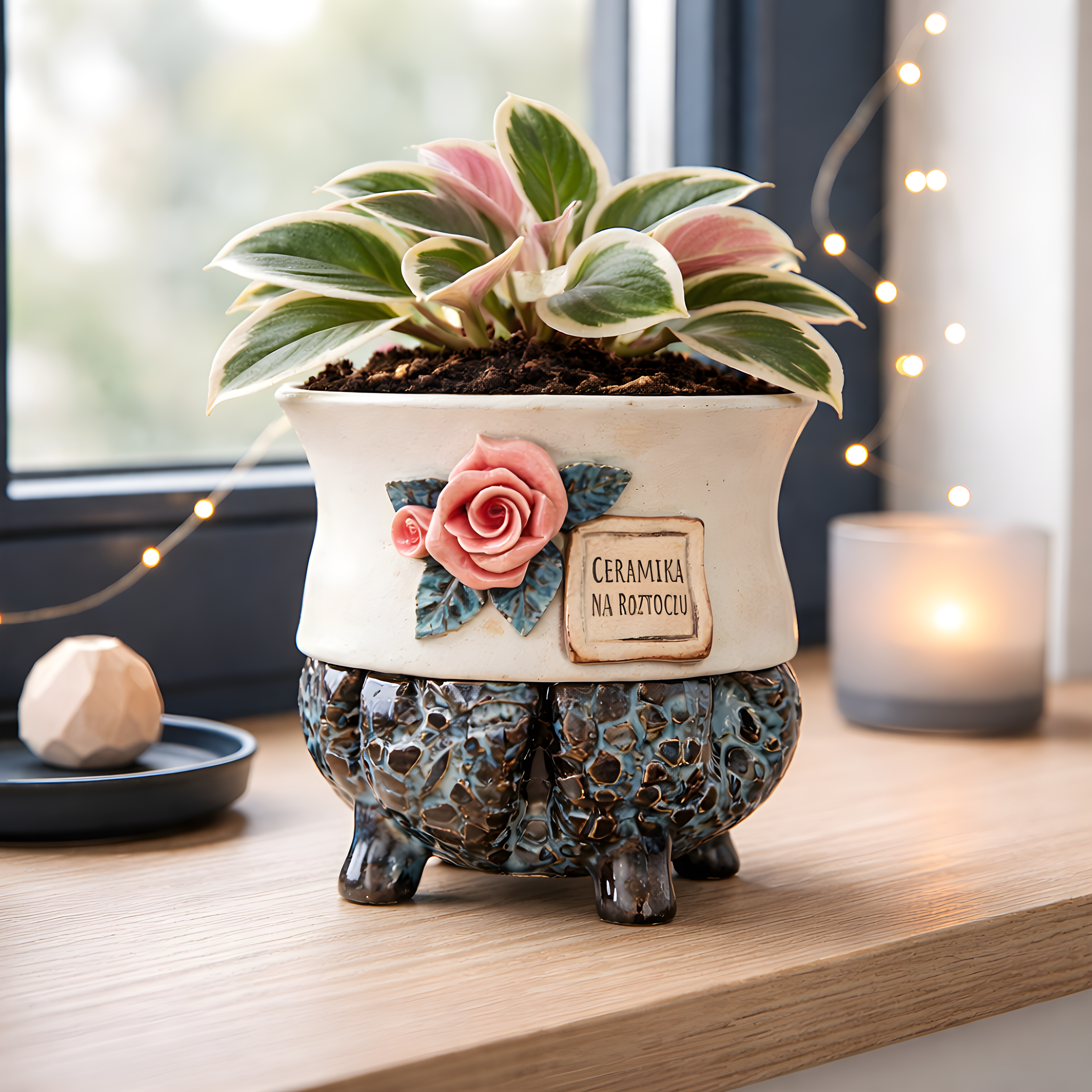 „Morska Sonata” to doniczka, w której spotyka się głębia morza i delikatność róż.