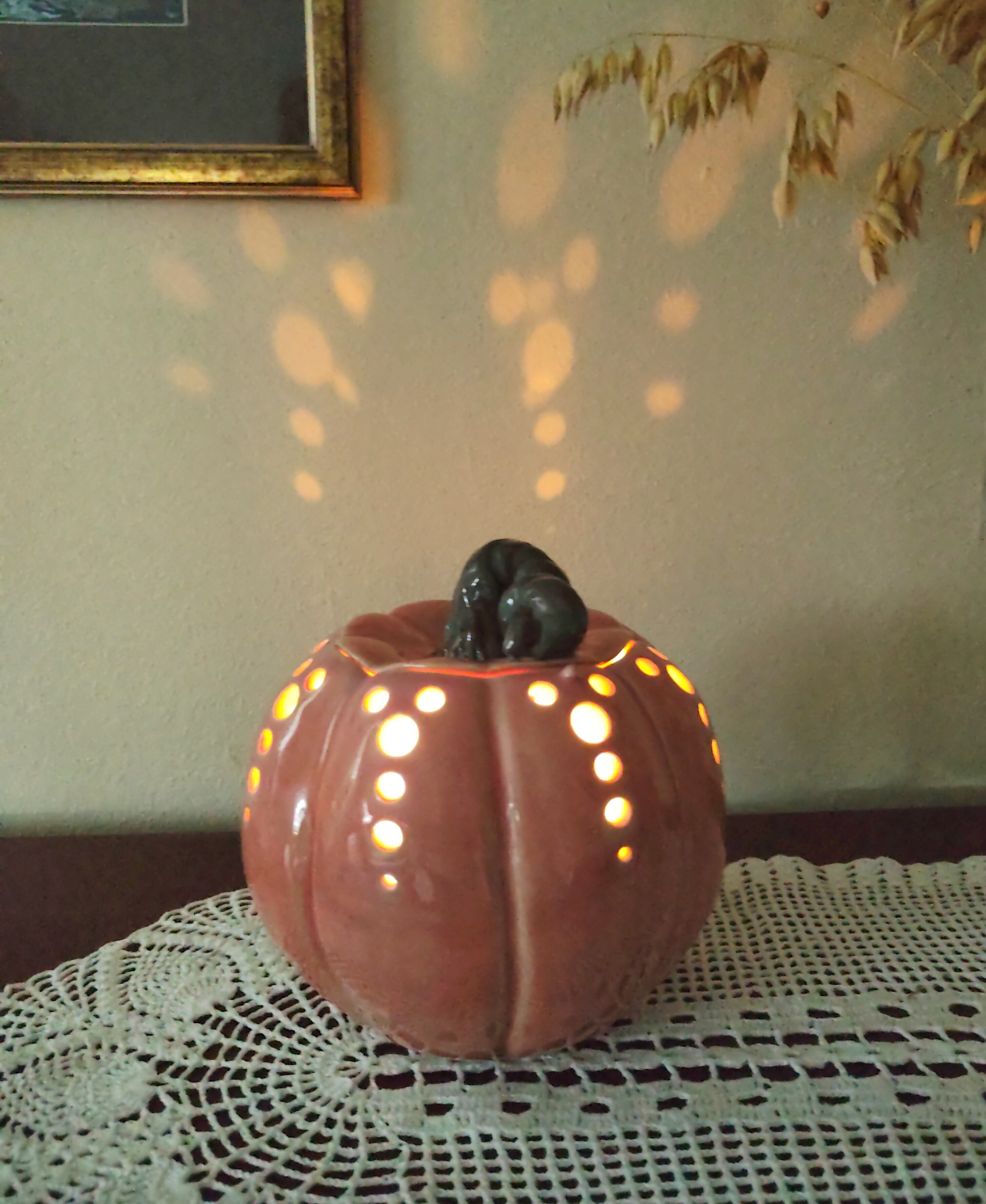 Po zmroku rysuje na ścianach delikatne światłocienie, a za dnia potrafi przyjąć rolę niewielkiego wazonu, szczególnie dla suszków i pojedynczych gałązek, które lubią towarzystwo subtelnych form.