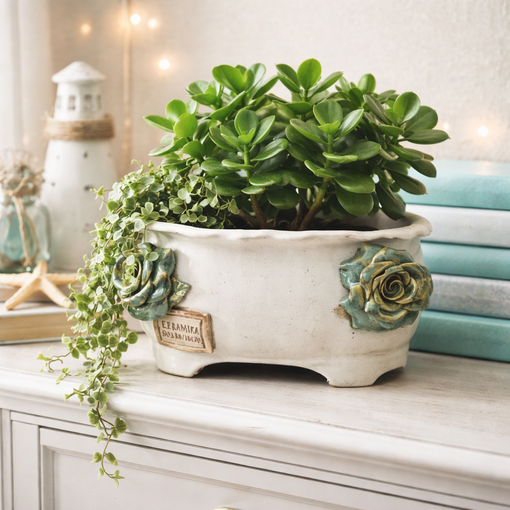 „Szmaragdowy Ogród” to doniczka ceramiczna, w której klasyczna forma spotyka się z artystycznym detalem.