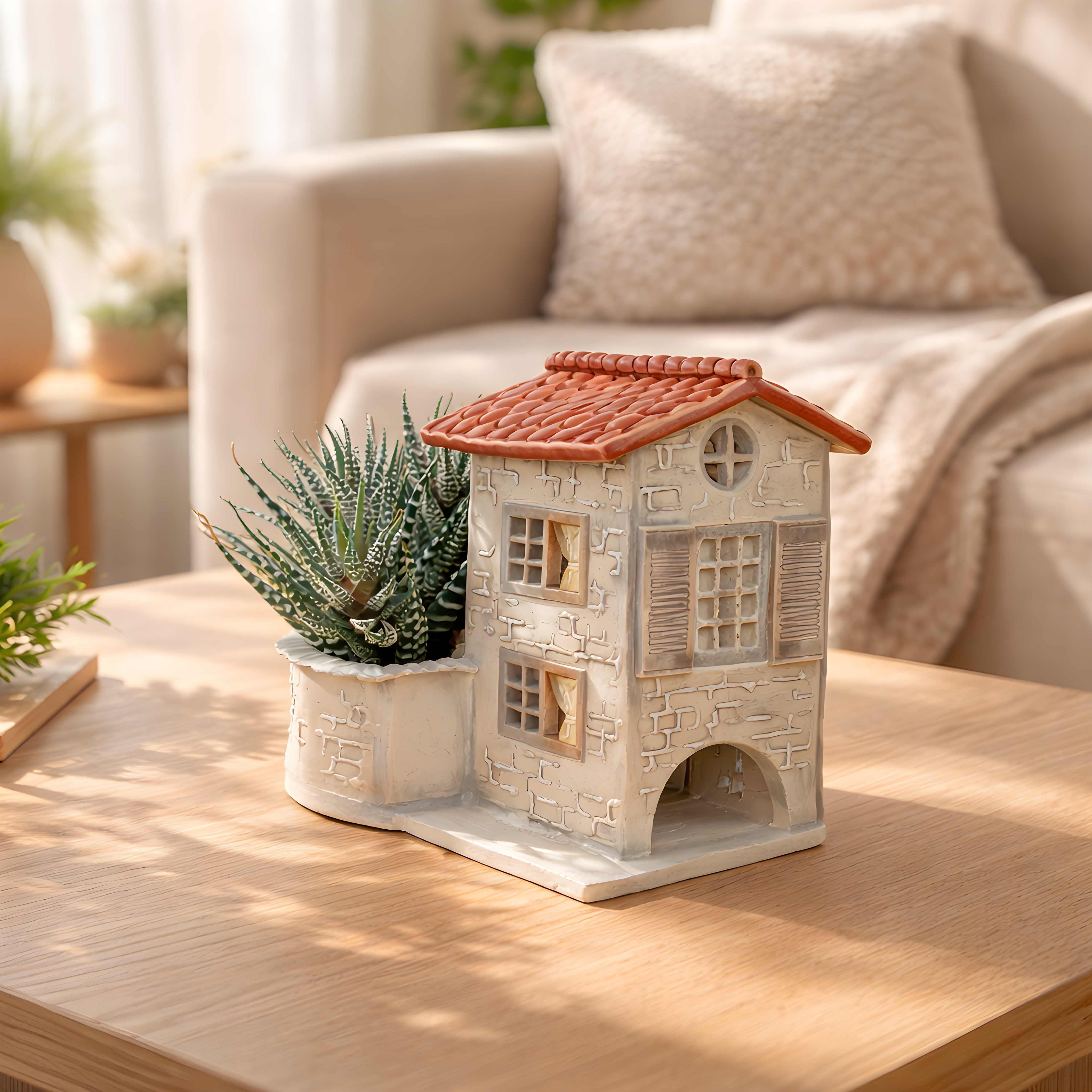 Ten domek ma w sobie coś z popołudniowego spaceru po wąskich uliczkach południa, gdzie jasne, wapienne ściany odbijają słońce, a czerwone dachówki wyglądają tak, jakby nagrzewały się całymi dniami.